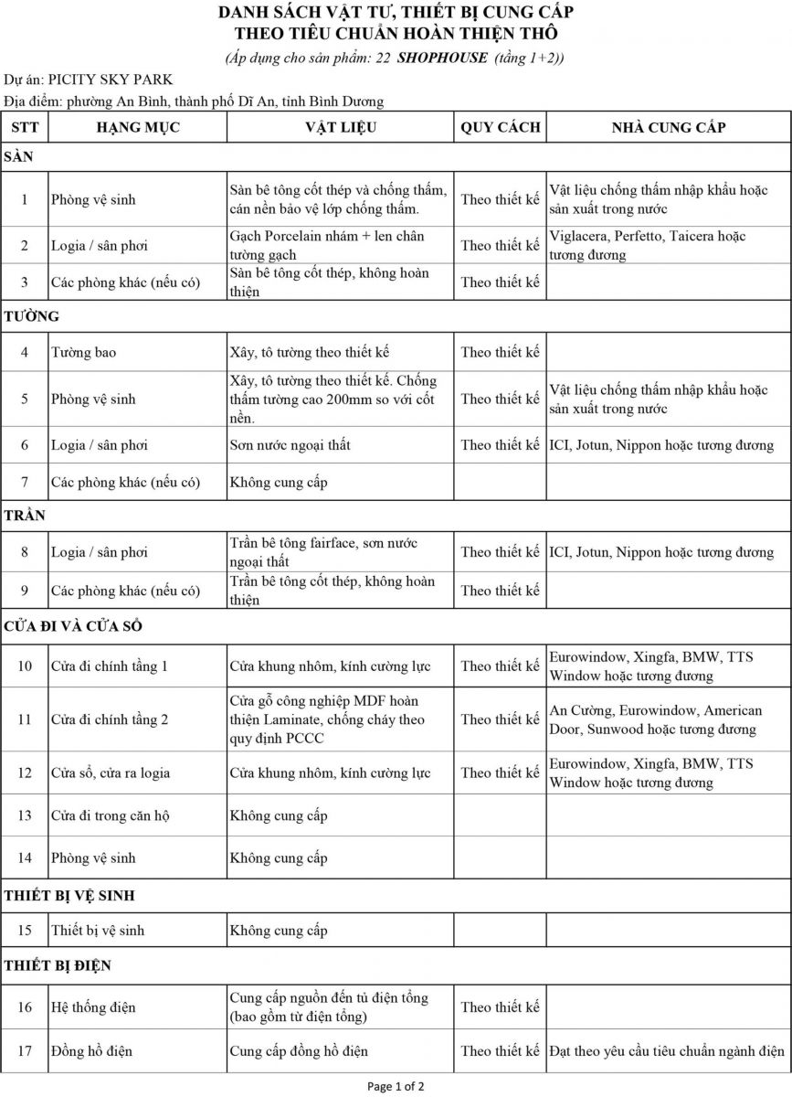 Shophouse tại Picity Sky Park