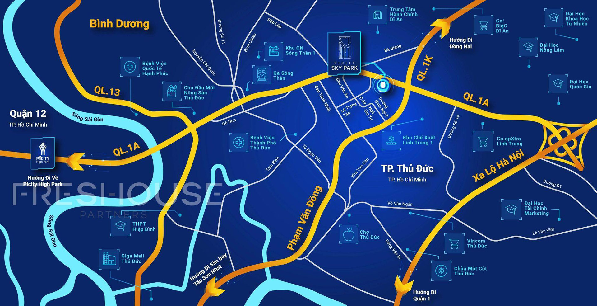 Vị trí Picity Sky Park được đánh giá là tâm điểm kết nối và giao thương, một bước chân, ngàn tiện ích. Từ dự án đáp ứng tốt các nhu cầu di chuyển về trung tâm, thuận tiện để học tập, làm việc và lựa chọn các hoạt động vui chơi, giải trí,… Đồng thời, đón đầu những cơ hội hấp dẫn từ sức bật hạ tầng.